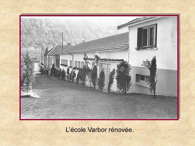 « Au cours de l ’année 1957, l’école Varbor, école communale de Buxières les Froncles, a fait l’objet d’importants travaux de rénovation et d’agrandissement. Le jour de l’inauguration, le 13 Octobre, en présence des autorités départementales, cantonales et communales, les buxièrois ont pu découvrir, avec une note de fierté, une école pimpante, largement ouverte sur la belle vallée de la Marne. Des murs abattus permettent un meilleur accès aux classes, un préau spacieux combiné avec des sanitaires bien équipés et une vaste cour de récréation qui semble se perdre dans le pré et le verger voisins. Bref, l’école Varbor est bien installée au milieu des champs et des jardins, au milieu des bruits rustiques, au milieu des odeurs automnales, comme une ruche: la vie de l’air l’entoure de partout. Les trois classes totalisent une centaine d’élèves, des petits, admis à cinq ans en maternelle, jusqu’à ceux de l’année du certificat d’études primaires qui vont sur leurs quatorze ans. »
